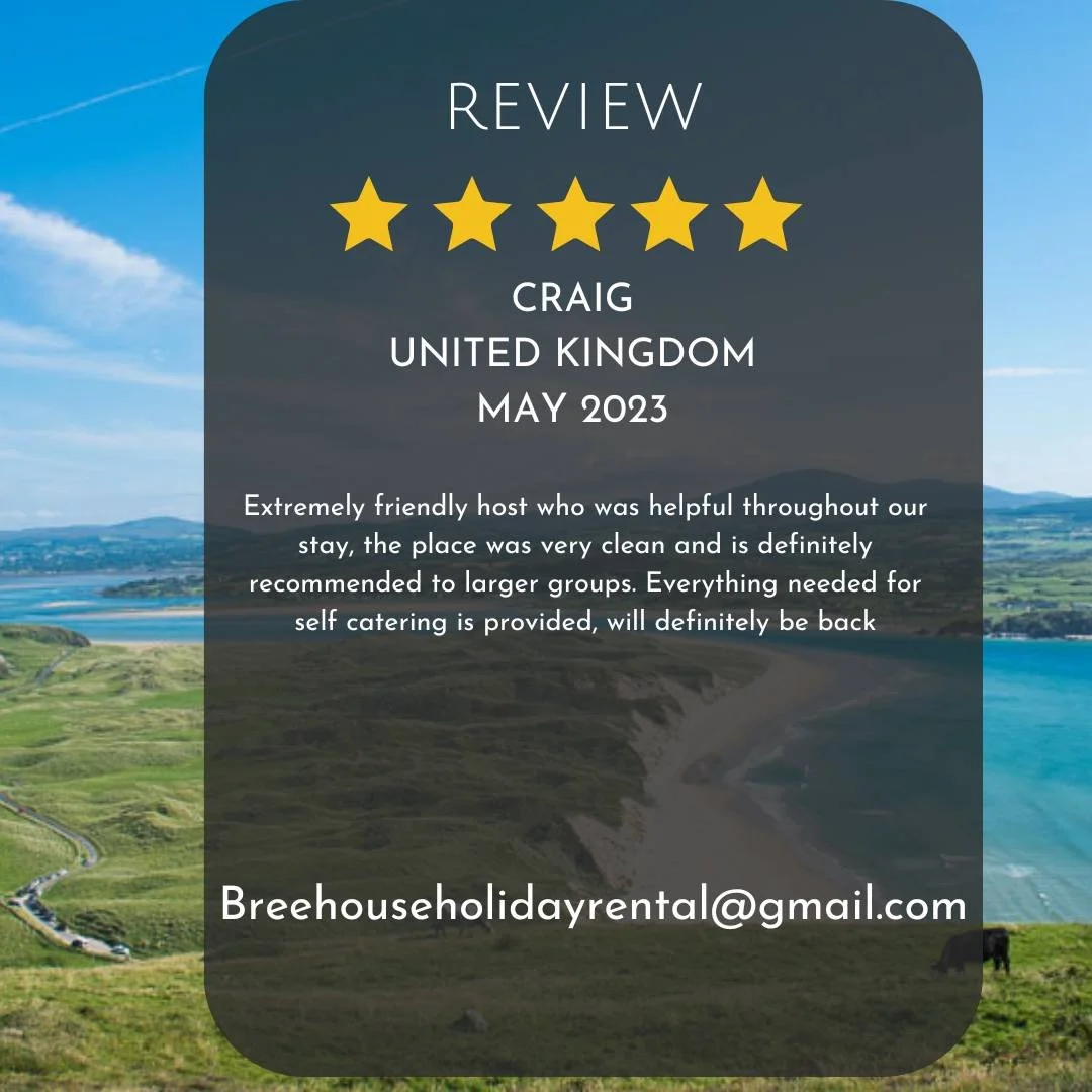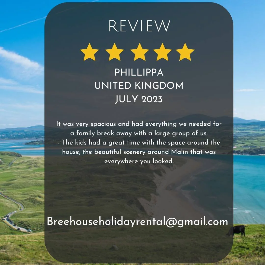 If you are searching for luxury accommodation in Malin Head, a quiet retreat in Donegal, or a scenic base from which to explore the Inishowen Peninsula, Bree House combines comfort, space and unforgettable surroundings in one exceptional location.